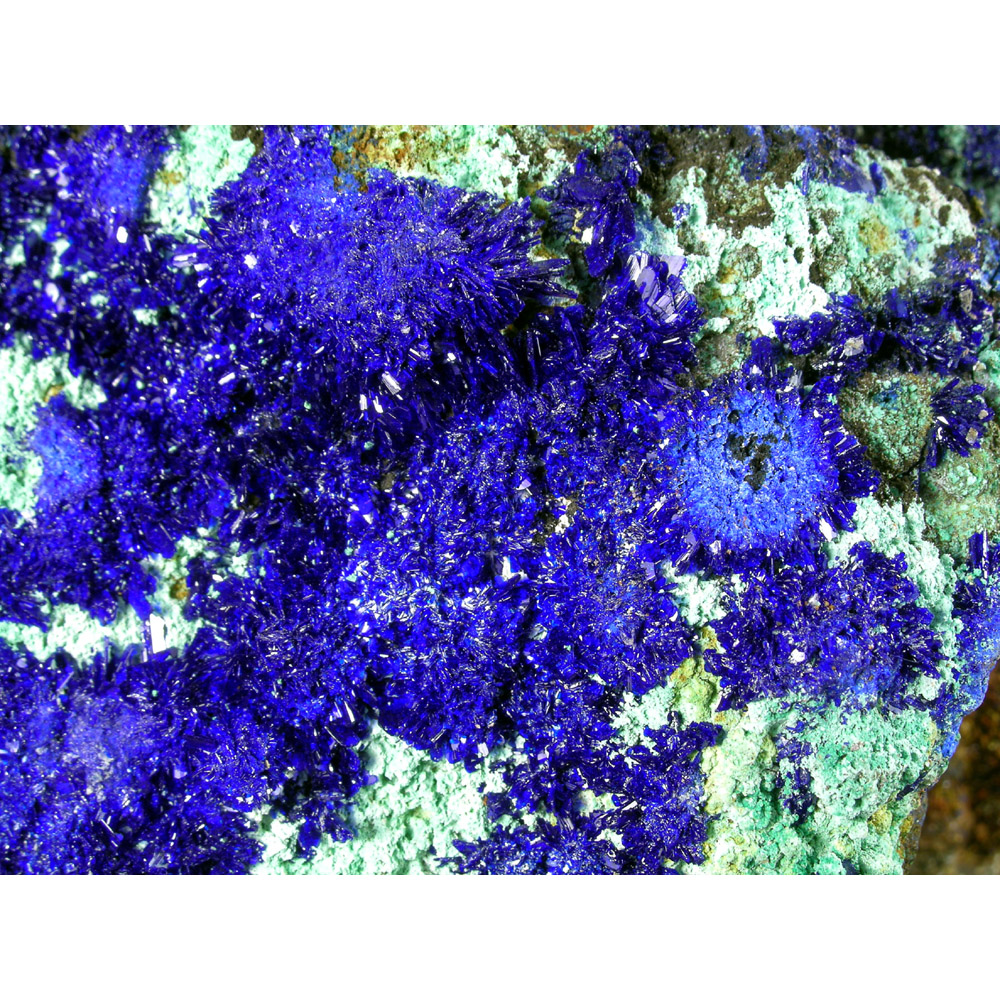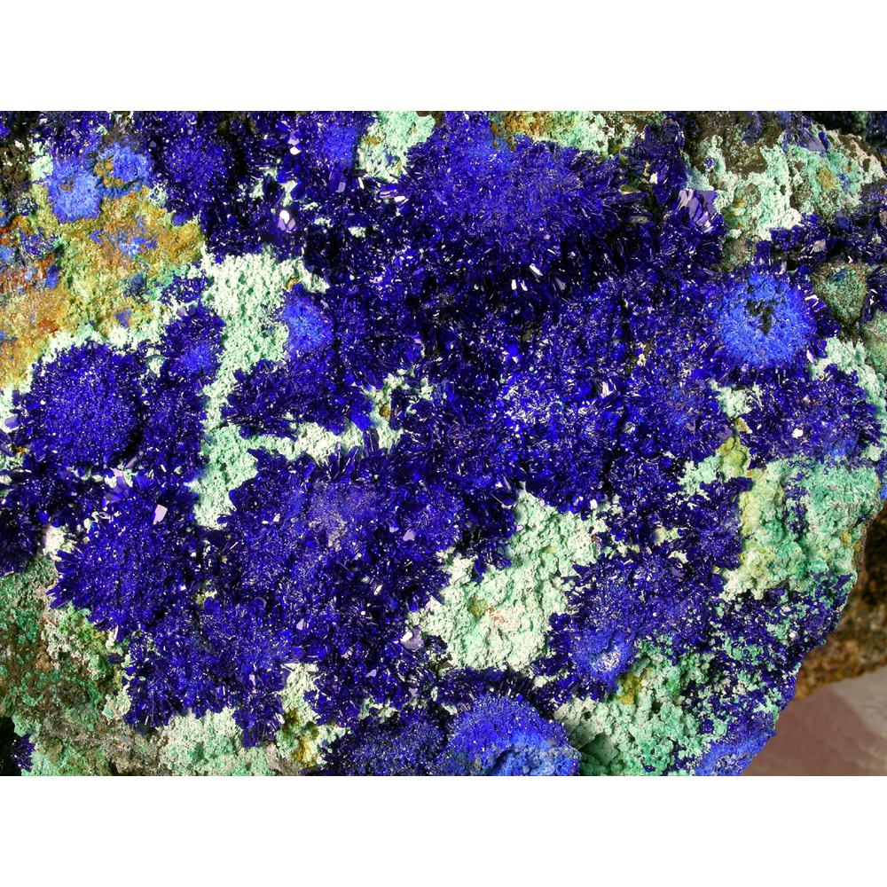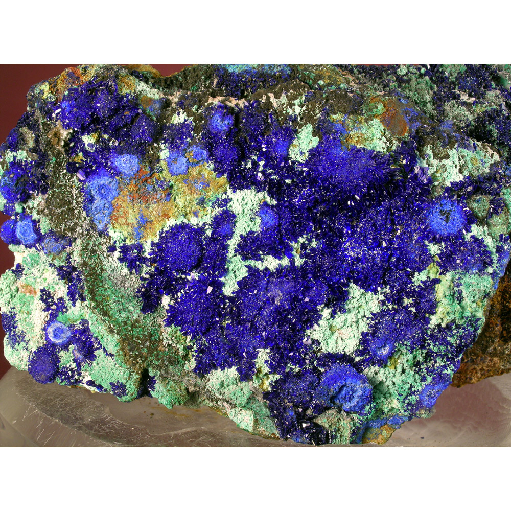 A LARGE and very colorful specimen of SPARKLY rich blue Azurite crystals with Malachite from the Liufengshan Mine in Anhui, China. Excellent contrast and absolutely luxurious color in a nicely-balanced composition.