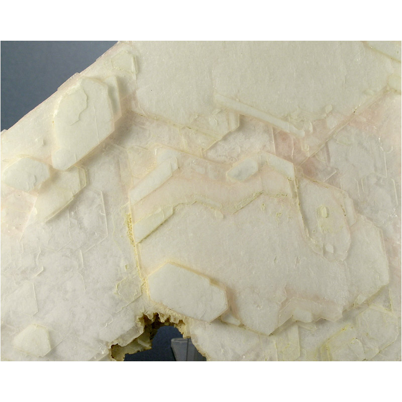 A large and quite unique specimen of light pink Calcite from the Huanggang mine in Inner Mongolia, China. It features a huge group of platy Calcite crystals joined together to create the two-sided formation pictured. The Calcite displays an unusual bi-color Fluorescence (red and purple) under both longwave and shortwave UV light as pictured below. Our ONLY specimen of this unique and unusual material.