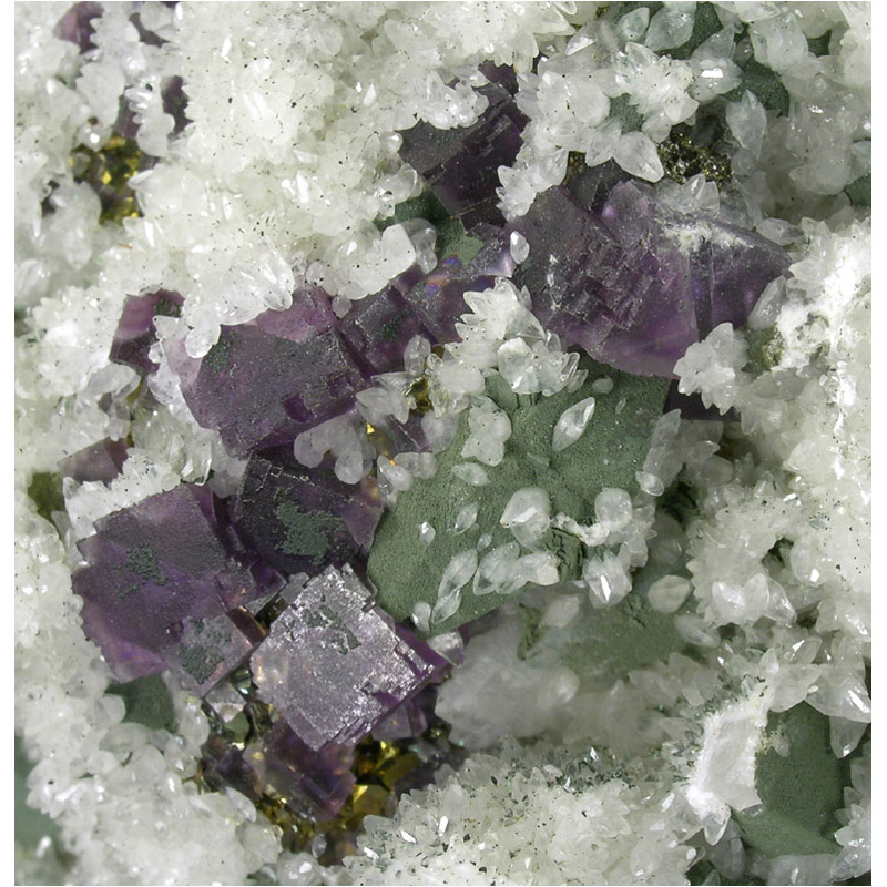 Fluorite, Calcite, Chalcopyrite, Chlorite from San Martín Mine, Zacatecas, Mexico