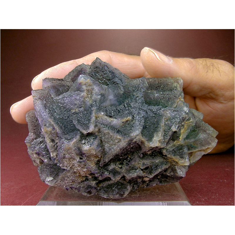 A unique and quite beautiful specimen of Fluorite crystals from De’An in Jiangxi province, China. It features numerous stepped octahedral Fluorite crystals that exhibit deep purple phantoms under a nicely translucent, teal-green outer layer. The crystals are characterized by countless sub-faces that give it the texture of reptile skin. Gracefully composed with good presentation for display and lots of fine details for you to explore all over. From my personal collection, acquired in 2011.