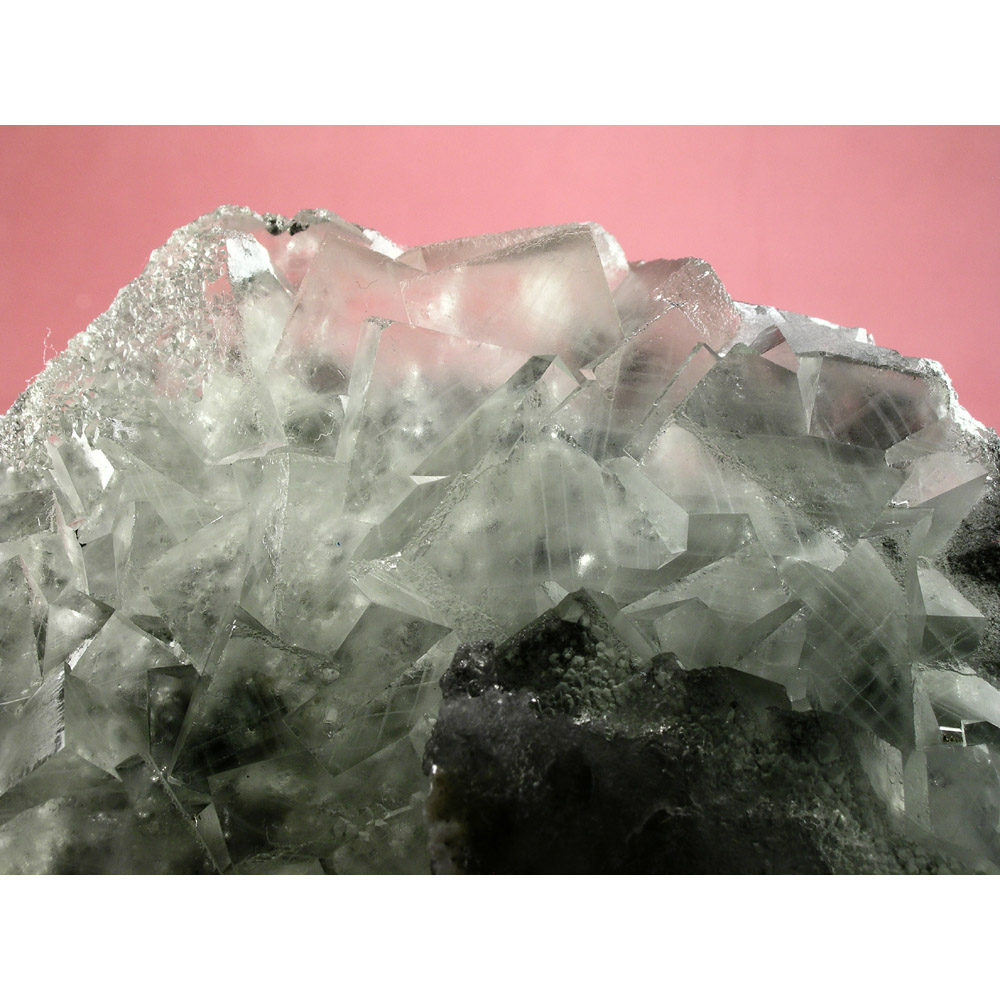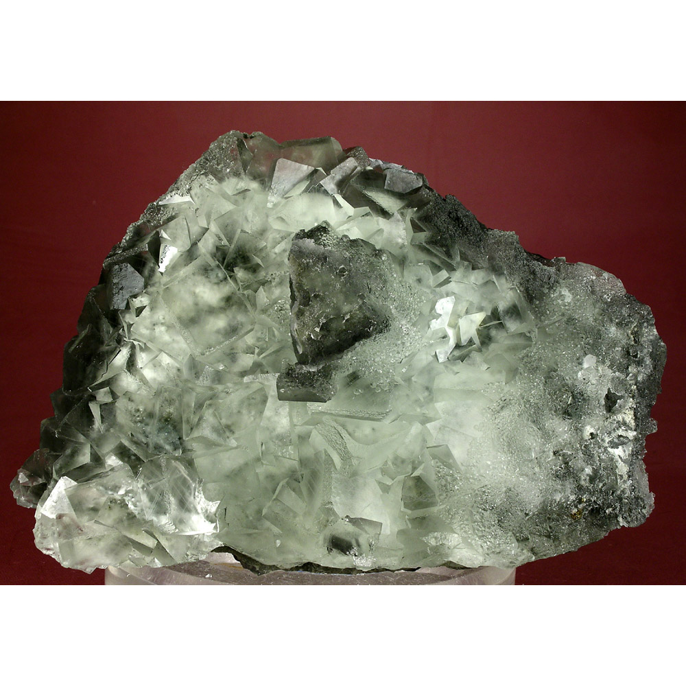 A unique and unusual Fluorite specimen from the Xianghualing mine in Hunan, China. It features a large grouping of light green cubic Fluorite crystals inter-joined to create the handsome formation pictured. The Fluorite exhibits exceptional clarity, and is even CLEARER IN PERSON than the photos show. Presents perfectly for display exactly as pictured. All in all, a large and showy specimen and a must for the collector of fine Fluorites.