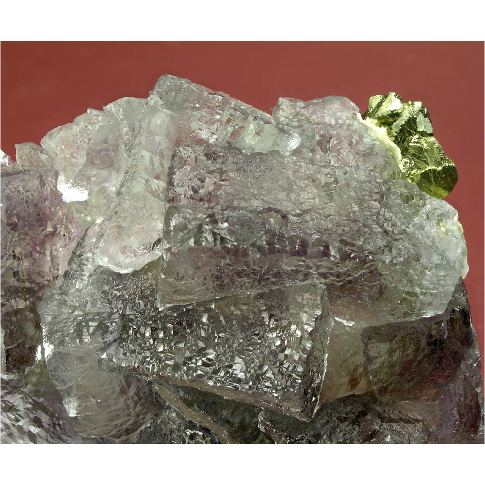 A unique and quite colorful specimen of purple-cored blue Fluorite from Inner Mongolia in China. It features a group of cubic Fluorite crystals inter-joined to create the graceful composition pictured. The cubes exhibit rich purple centers under a gemmy, ice-blue outer layer, with beautifully textured surfaces. Crystals of golden Chalcopyrite and magnetic Pyrrhotite add a nice bit of contrast to an already beautiful specimen. In excellent condition, with lots of fine details for you to explore all over.