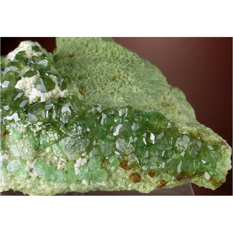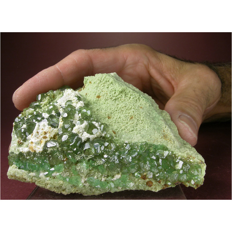 A brilliant specimen from the exciting find of Demantoid garnets several years ago in Madagascar. It features a large matrix which is hosting numerous highly lustrous and quite GEMMY crystals of lovely green Demantoid. As the photos show, several shades of green are represented. All in all, a very choice gem crystal specimen, with lots of amazing details for you to explore.