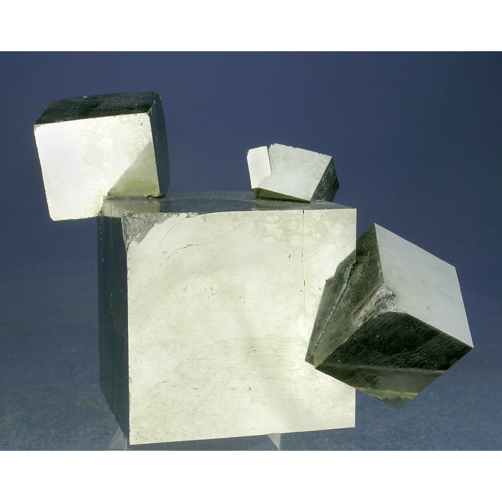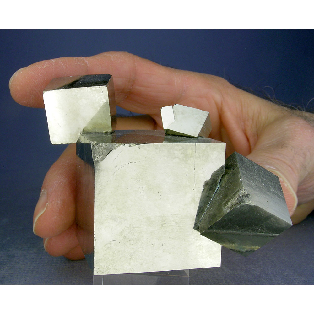 An amazing and quite beautiful specimen of cubic Pyrite from Spain. It features five MIRROR-BRIGHT cubes of golden Pyrite to 4.0 cm. intergrown with one another to create a fantastic formation that is quite attractive no matter which side you view it from. MUCH SHINIER in person. I purchased this cluster directly from the mine owner, who informed me that virtually all such “chains” of Pyrite cubes from this locality are reconstructed after removal from the hard clay host rock, this piece may have one such repair . A really choice example of this material, with a very graceful composition that is dazzling all the way around. I’ve included a short VIDEO showing all sides of the specimen.