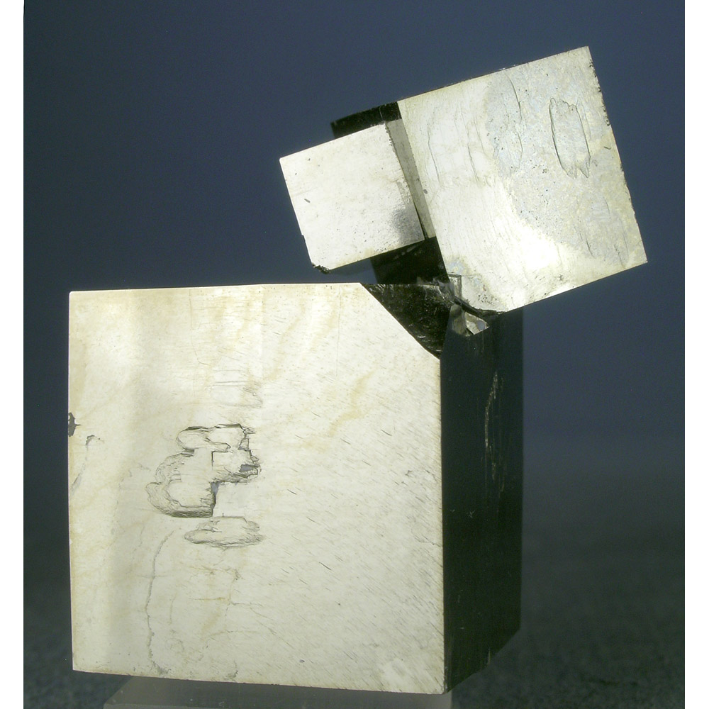 An amazing and quite beautiful specimen of cubic Pyrite from Spain. It features three MIRROR-BRIGHT cubes of golden Pyrite intergrown with one another to create a fantastic formation that is quite attractive no matter which side you view it from. MUCH SHINIER in person. I purchased this cluster directly from the mine owner, who informed me that virtually all such “chains” of Pyrite cubes from this locality are reconstructed after removal from the hard clay host rock; this piece is no exception. A really choice example of this material, with a very graceful composition that is dazzling all the way around. I’ve included a short VIDEO showing all sides of the specimen to give you a good idea of its three-dimensional shape.