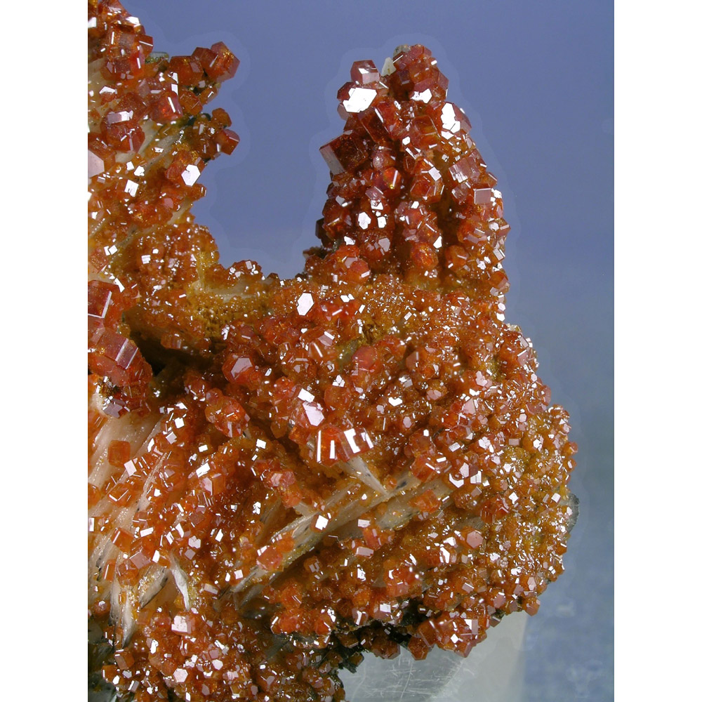 A very colorful specimen of GEMMY candy red Vanadinite from Mibladen, Morocco. It features numerous super lustrous, vivid red Vanadinite crystals artfully arranged into a very aesthetic formation over a a field of white Barite blades. Lots of amazing details for you to explore all over. In excellent condition as the photos show.