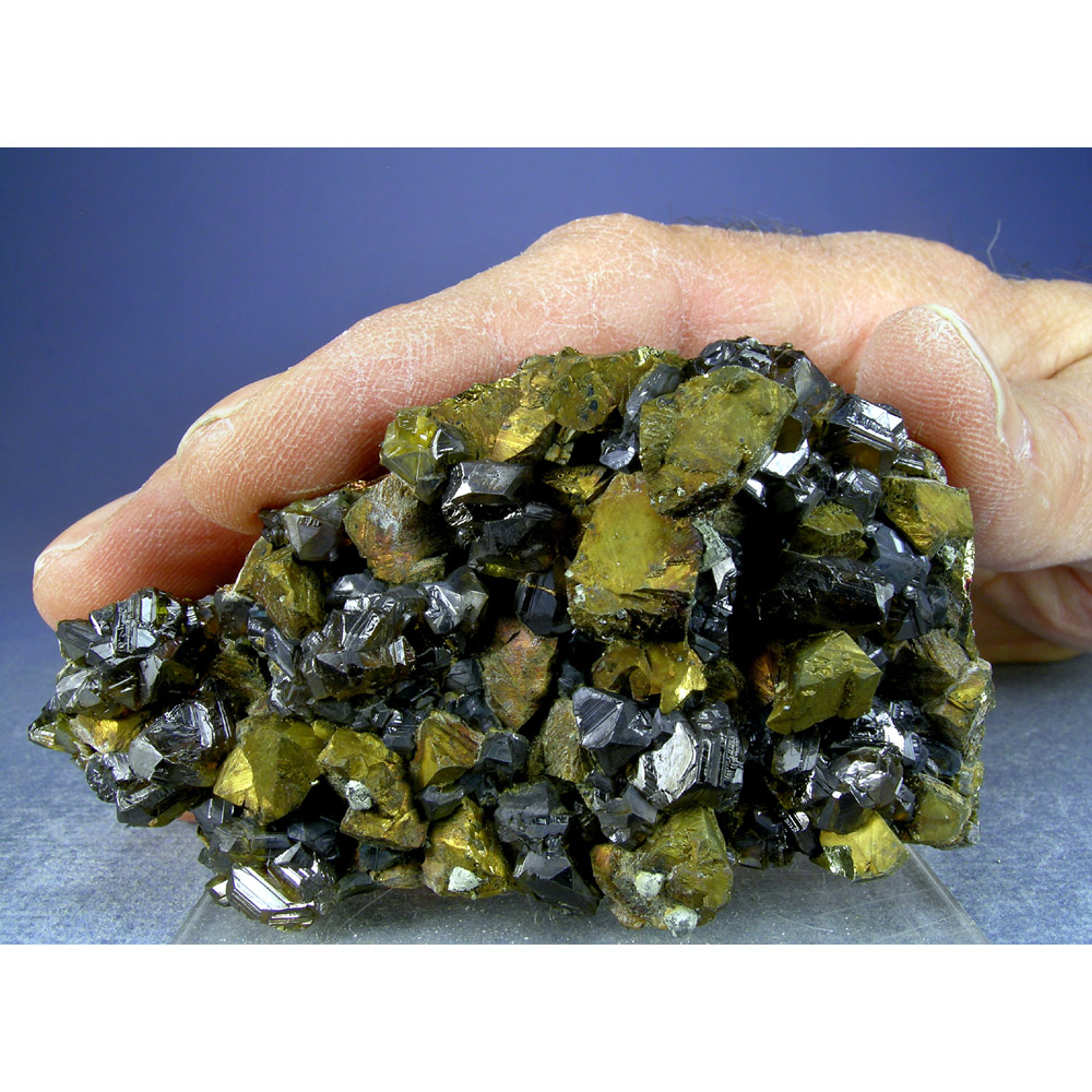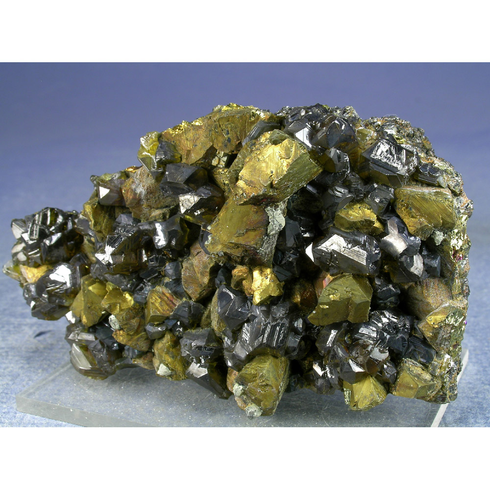 A choice combination of golden Chalcopyrite crystals with Sphalerite from the classic Commodore Mine in Colorado. Just released from an old collection that was made available at the Tucson show. Excellent color and contrast in a nicely balanced composition. Self stands to present perfectly for display as pictured.