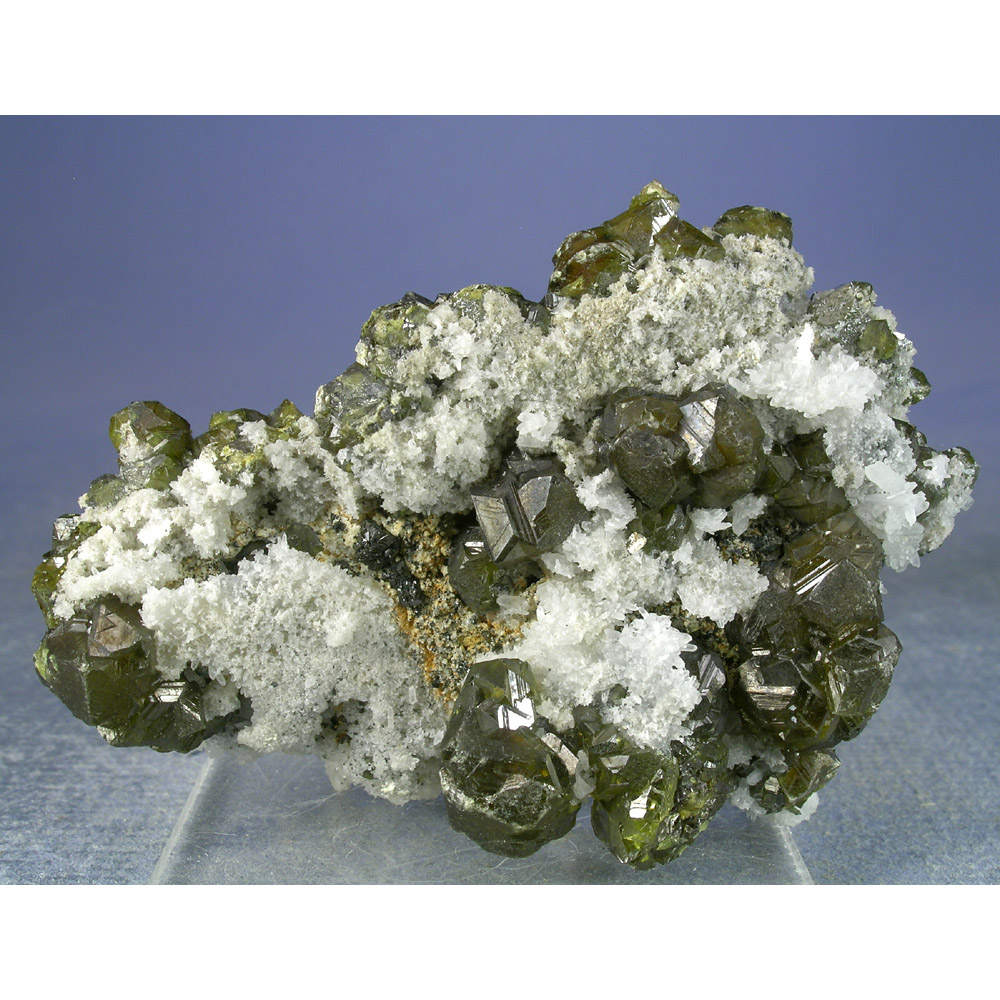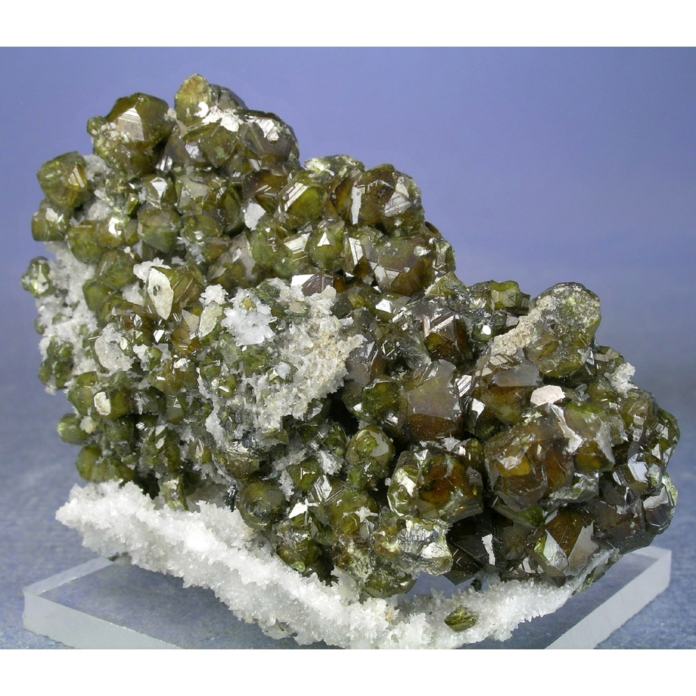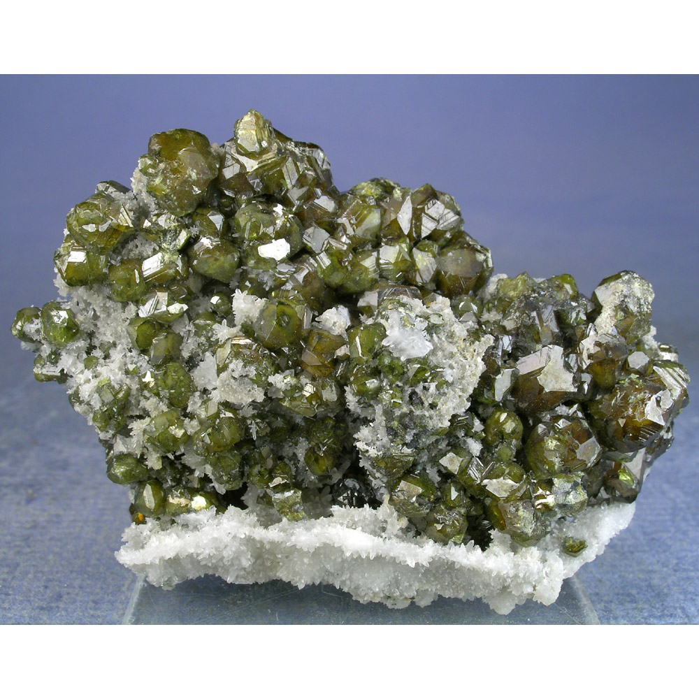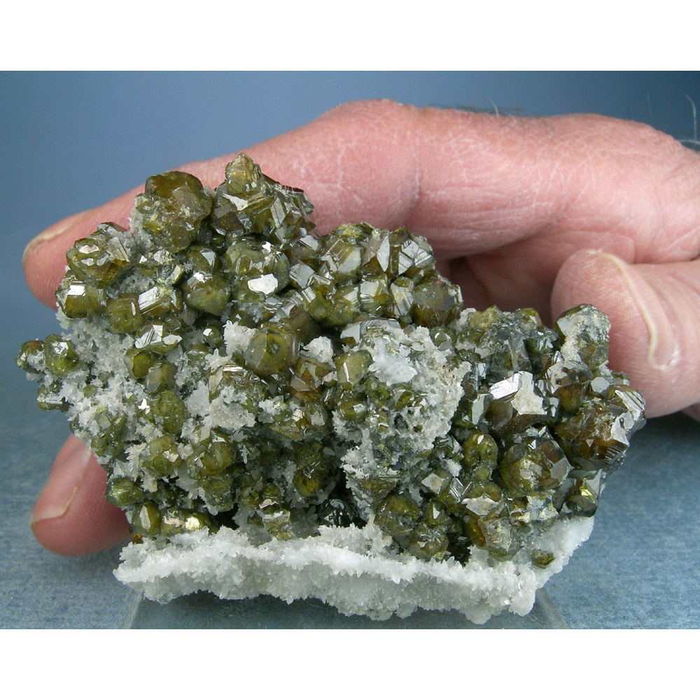 A rarely seen and quite attractive old-collection specimen of green Sphalerite crystals with Quartz from the Septemvri Mine in Madan, Bulgaria. It features numerous crystals of lustrous, sharply defined Sphalerite over a base of tiny white Quartz crystals. The backside exhibits several larger Sphalerite crystals as well. SELF-STANDS to display exactly as pictured. Lots of interesting details for you to explore all over this beautiful jewel.
